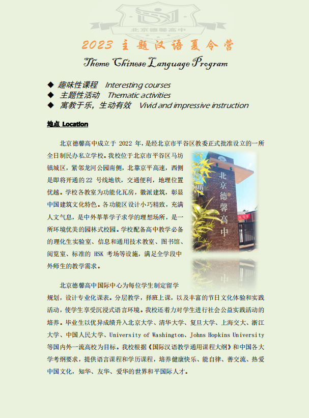 北京德馨高中夏令营
